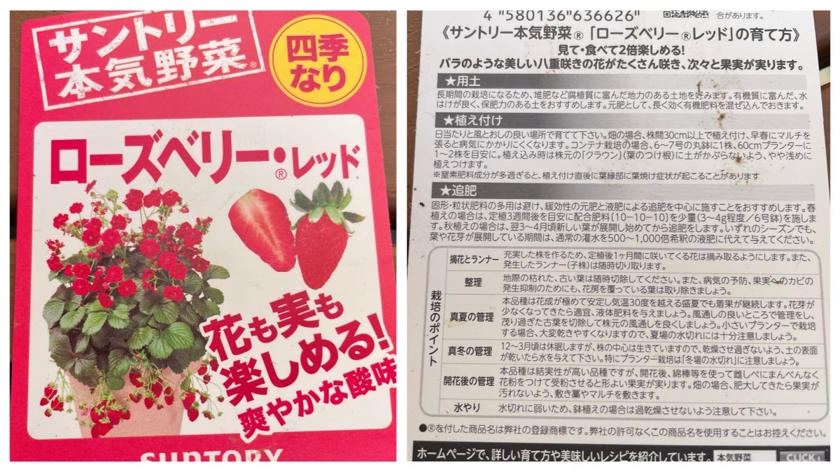 ・左 おととしのらくなりいちご親株
