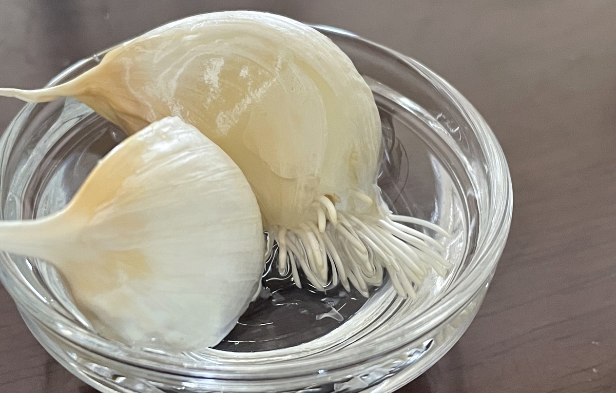 1日水に浸けておいたニンニクをいっしょに埋めました(発根早すぎ)