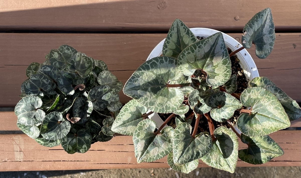 そういえばうちの夏越しガーデンシクラメン(右側です)